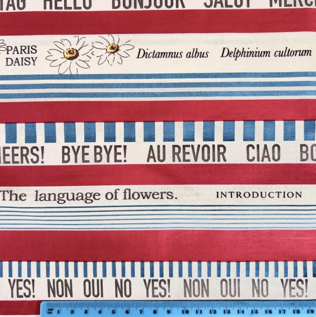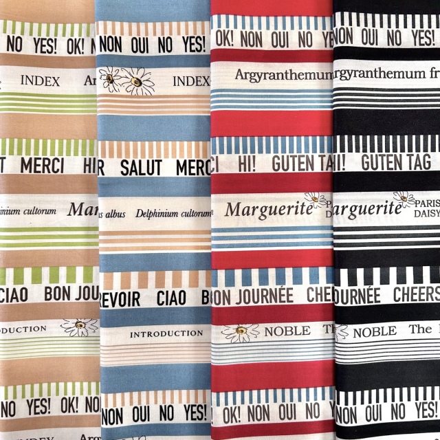 【小関鈴子先生監修  中原淳一 / ひまわりや 復刻デザイン布地】ストライプ 英字 猫柄 レトロポップ 昭和レトロ布 JKH-139 6色展開