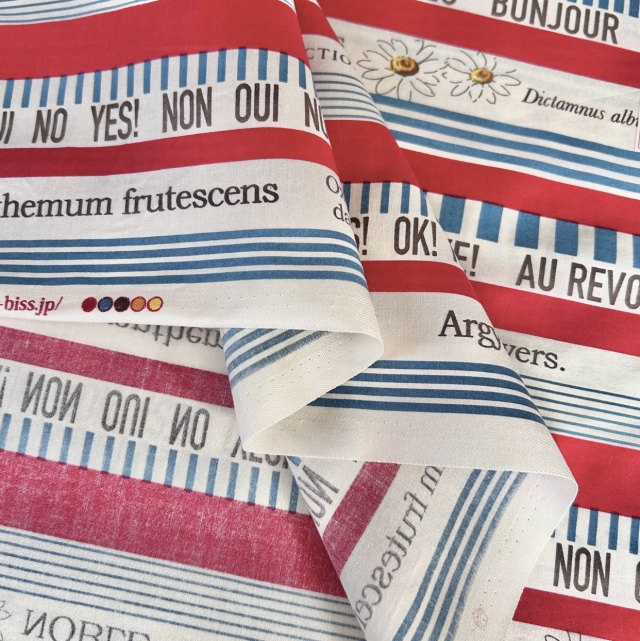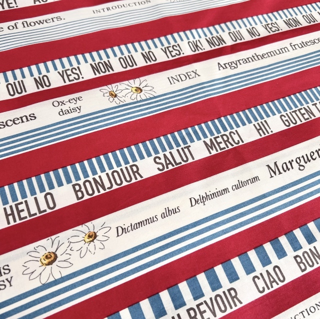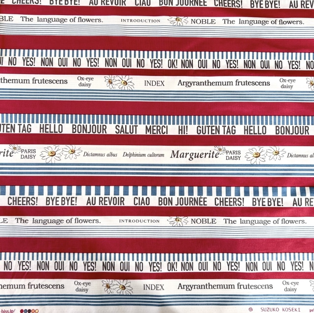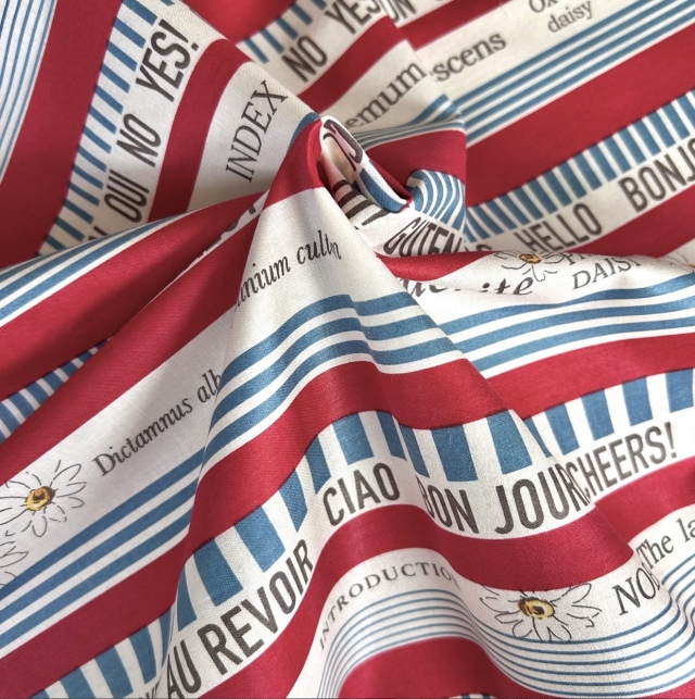 【小関鈴子先生デザインプリント】(JKS-384)レッド・ベージュ ストライプ・英字柄