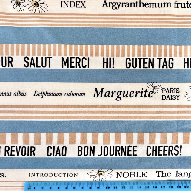 【小関鈴子先生デザインプリント】ストライプ 英字 植物柄 ブルー系 2色展開 ミニサイズカット (JKS-419)