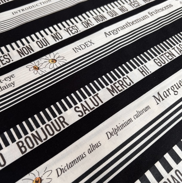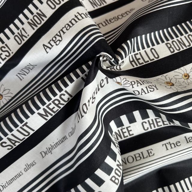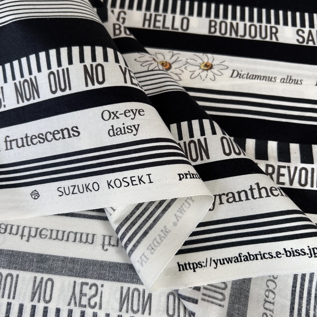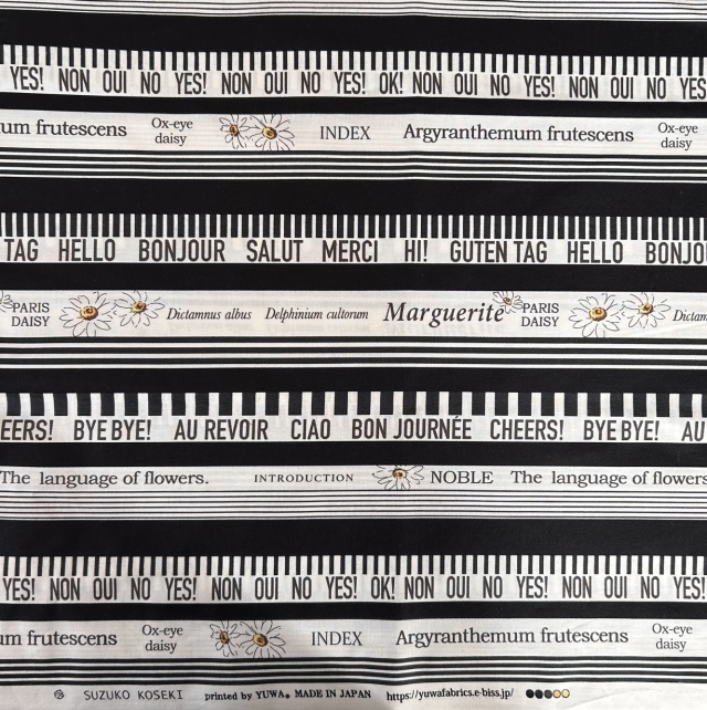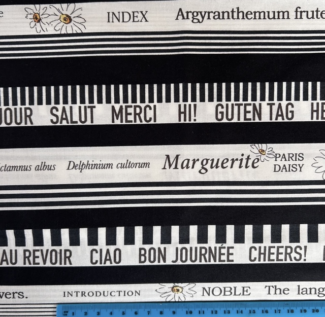【小関鈴子先生デザインプリント】(JKS-383)ブラック・ベージュ ストライプ・英字柄