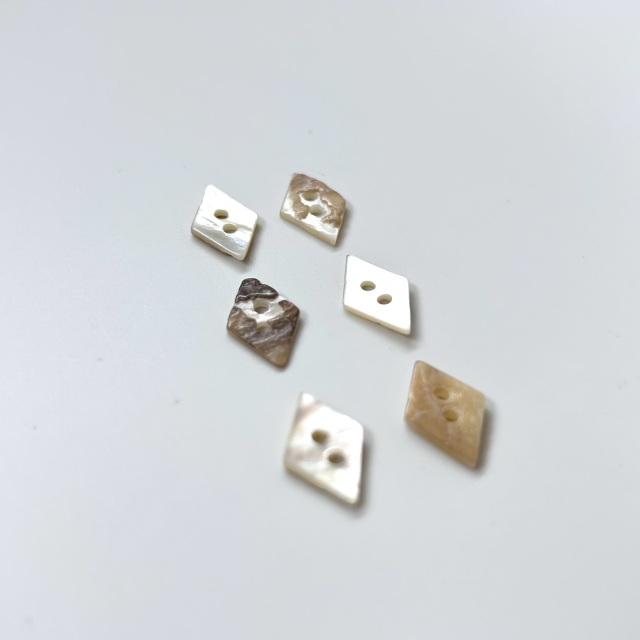 - 天然の貝をくり抜いて作られたボタンはひとつとして同じ色合いがなく、天然素材ならではの風合いと光沢が美しく輝きます。