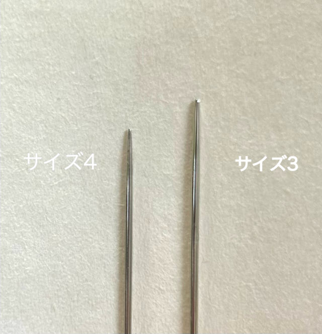 | 長さ(太さ) | 【サイズ3】74mm(約φ1mm)、【サイズ4】70mm(約φ0.80mm) |