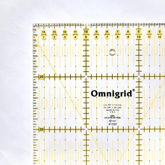 - オムニグリッド社製【正方形型定規】はパッチワークやキルティングのピース制作、型紙、製図など多岐に渡り活躍してくれます。