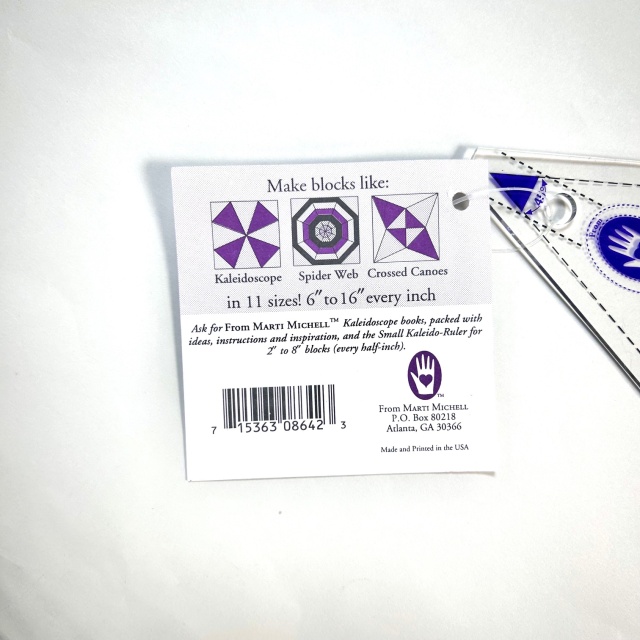 - マーティ・ミッチェルの【スモール カレイド ルーラー】は反りや破損に強い アクリル製で、すべてのテンプレートに個別の識別番号がついています。