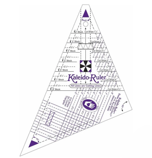 - この小型定規は2から8インチまでの完成ブロックの三角形を切るのに便利です。万華鏡型ブロックの三角形を1つのツールで簡単かつ正確に切ることができます。 全ての寸法(ブロックとストリップのサイズ)が定規に印刷されているので、推測する必要がありません。