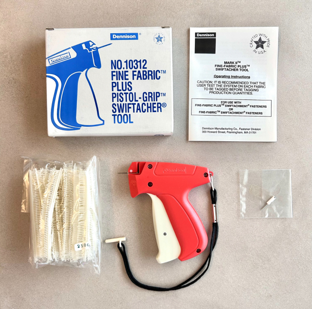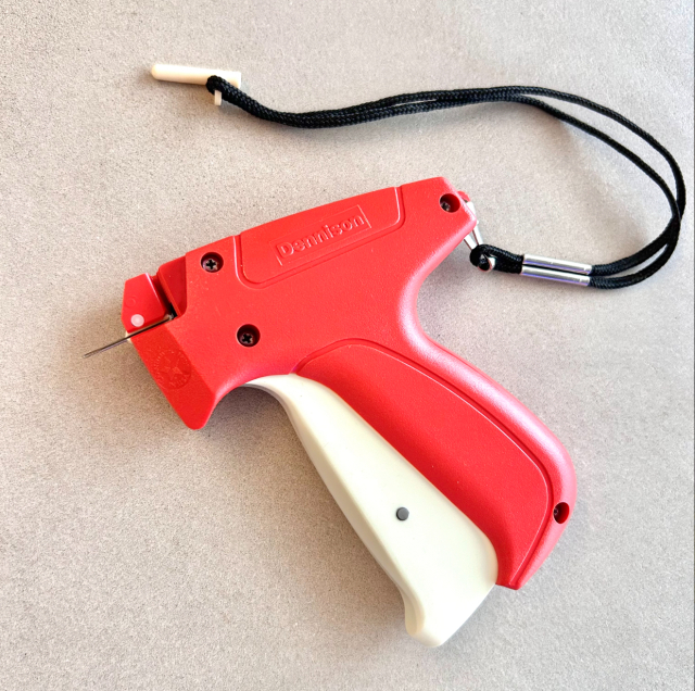 - 衣類用タグ付けガンのしつけ用ガンタッカーを使ったキルトの仮縫いはよく使われる手法ですが、タックを打ち込む際、針の先で作業台を傷つけないよう毎回布を軽く持ち上げる必要があります。