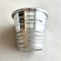 20世紀初頭、禁酒法時代のアメリカでは「指ぬき一杯分」とゲストが答えることでごく少量の飲み物を飲みたいという、よく知られた英語の表現をもじった巨大な指抜きで、ゲストの飲み物の量を計るためのグラスです。