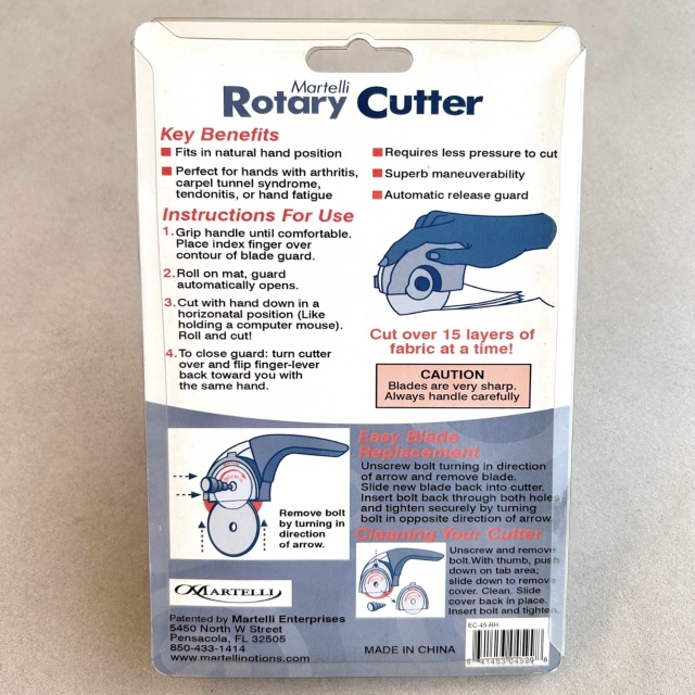 - エルゴ ロータリーカッターは人間工学基づいたデザインで、快適な輪郭のグリップにより驚くほど手首に負担を掛けずに簡単に複層の布をカットすることができます。(一度に15枚以上の布地をカットできます!)