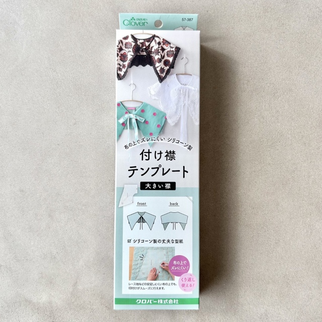 - 繰り返し使うことができ、使い勝手の良いシリコーン製のテンプレートで付け襟づくりができます。