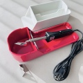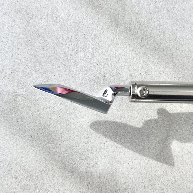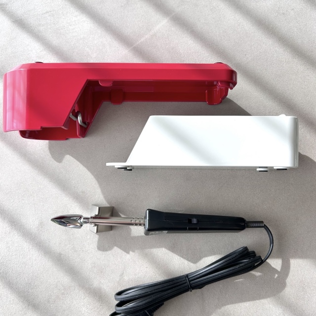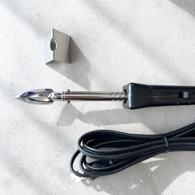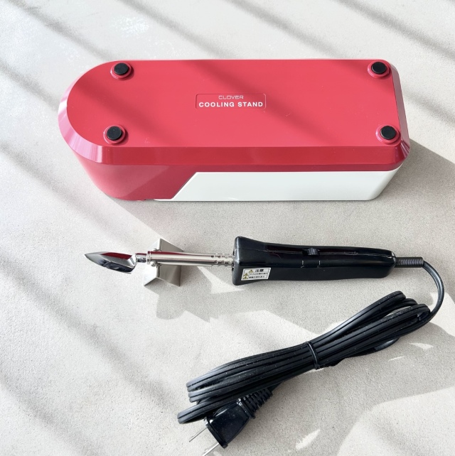 - クロームメッキのこて先は滑りが良く錆の心配がありません。持ち手部分の「入」、「切」スイッチによってオンオフの切り替えができます。(温度調整の機能はついておりません。低温で使いたい場合などは「入」、「切」を適時操作していただき温度調節をお願いいたします。布地の適温が不明な時は余り布などで試しがけを行ってください。)