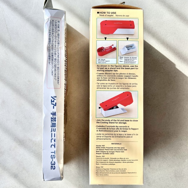 | 内容品 | ミニこて本体、こて用ミニスタンド、ミニこてクーリングスタンド | 製品寸法(長さ × 幅 × 高さ) | こて本体23cm、持ち手幅3cm、こて先幅1.5cm×3.6cm |