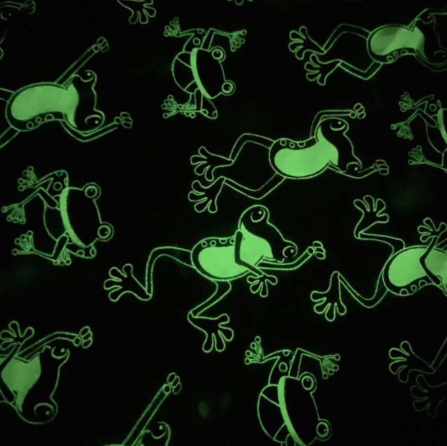 | 素材 | コットン100% / シャーティング(平織り)蓄光塗料使用 『無事カエル(帰る)』とも言われる縁起の良いカエルのデザインはその可愛らしさが注目を呼び人気急上昇中。蓄光塗料部分が暗闇で光る生地なのでお稽古グッズなどにおすすめですよ。 |