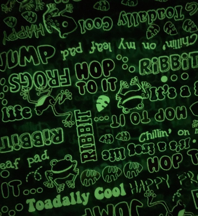 | 素材 | コットン100% / シャーティング(平織り)蓄光塗料使用 『無事カエル(帰る)』とも言われる縁起の良いカエルのデザインは その可愛らしさが注目を呼び人気急上昇中。 蓄光塗料部分が暗闇で光る生地なのでお稽古グッズなどにもおすすめですよ。 |