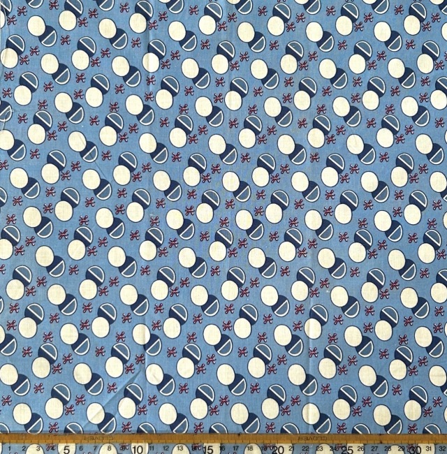 希少生地 USAコットン【サーティーズ(1930年代の復刻版生地)】レトロドット柄 ブルー系 33×37cm(UTH-232)