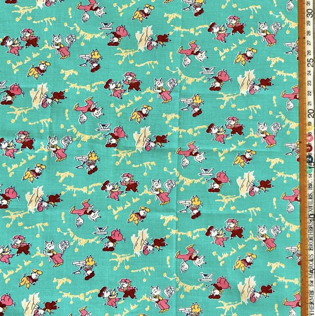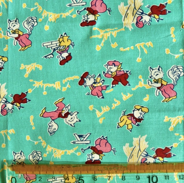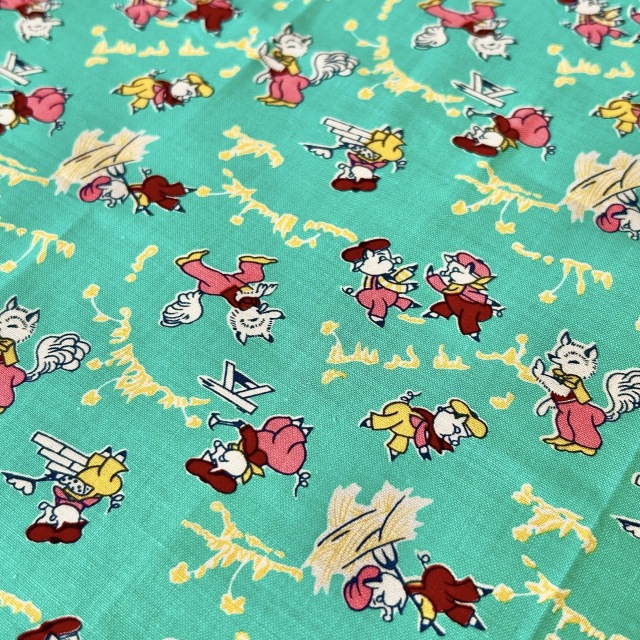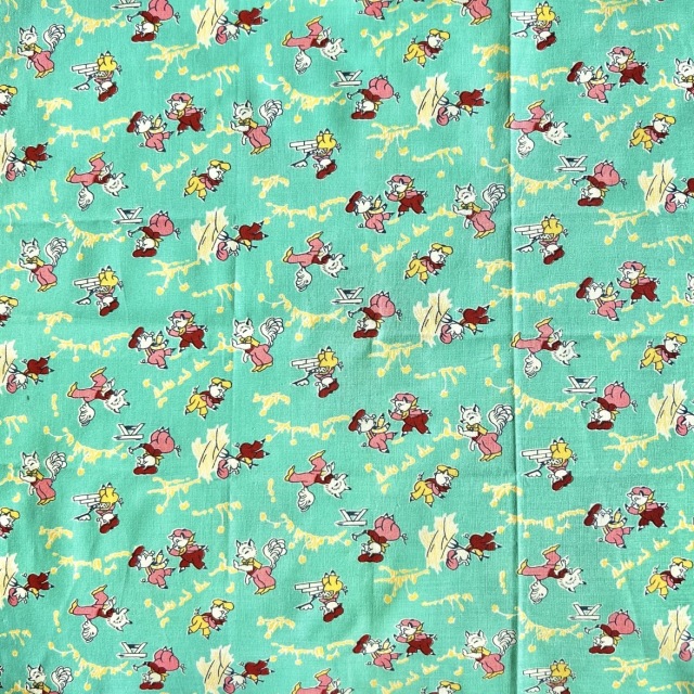 希少生地 USAコットン【サーティーズ(1930年代の復刻版生地)】レトロな3匹の子豚柄 グリーン系 33×37cm(UTH-236)