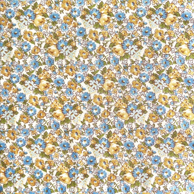希少生地 USAコットン【サーティーズ(1930年代の復刻版生地)】レトロ柄 花柄 ブルー×イエロー系 50×27cm(UTH-247)