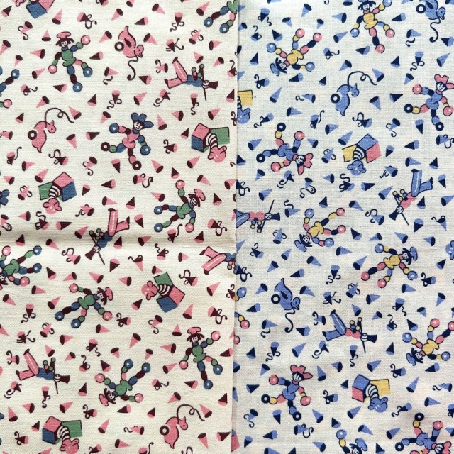 希少生地 USAコットン【サーティーズ(1930年代の復刻版生地)】レトロ柄 おもちゃ箱柄 2色展開(UTH-249)