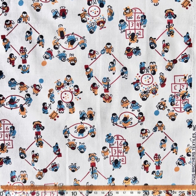 希少生地 USAコットン【サーティーズ(1930年代の復刻版生地)】レトロキッズ柄 プレイタイム ホワイト系 50×27cm(UTH-252)
